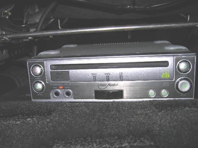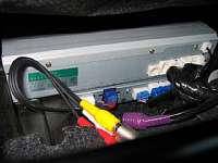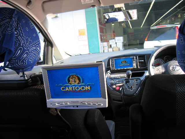 TEN製のようですので、ECLIPSE製のオプションがそのまま使えます。今回は、ビデオ接続ケーブルを運転席下に格納されているMOPナビ本体に接続する事で、DVDプレーヤからの信号を前の画面に映し出す事ができました。