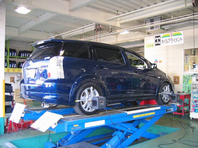 所要時間は約2時間。何やら見慣れぬ装置をホイール?タイヤ?に装着して、色々なデータを取り、角度を適正な値に調整していました。(何やってるかはまったくわかりませんでしたが^^)