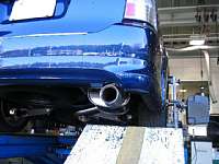 調整が終わった後、最初に測定した値と調整後の値を一通り説明してくれました。それによると、フロント側は、左右ともタイヤが右向きにずれていて、特に右側は大きく外側にゆがんでいたそうです。と、言っても普通に走っていて特に気になった事はありませんでしたが...。結局、前後とも、直進安定性を向上させるために若干内側向き?に調整して頂いたそうで、ショップからの帰り道にいつも以上にステアリングに集中しましたが...よくわかりませんでした。^^
