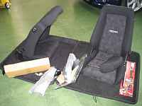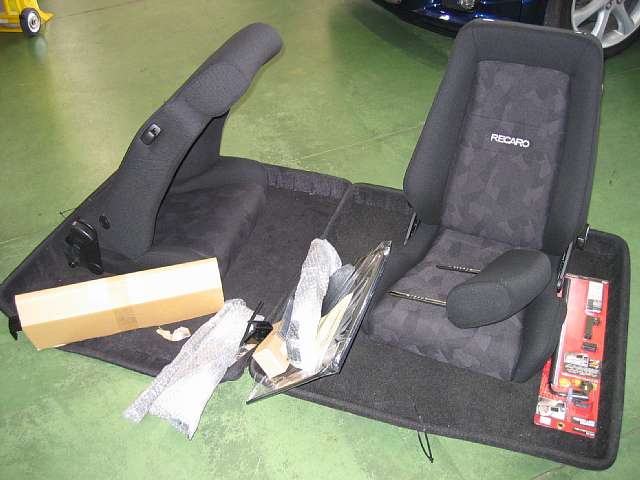 シートは某オークションで購入しました。基本的にシートは新品が欲しかったのですが、ツインで入れると総額で限りなく24万円に近い価格となってしまうので、思いっきり躊躇していました。とりあえず一脚...などと思っていたのですが、偶然にも、装着後5日で外してしまった極上品をオークションで発見してしまったというわけです。実際に届いて見てみましたが、新品そのものです。結構な価格で落札してしまいましたが、新品が欲しかったので満足です。^^