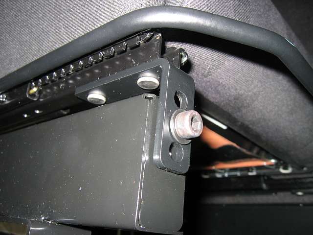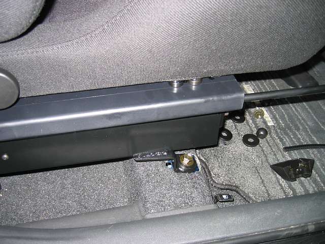 そして...ついに実車への装着です。元々純正シートを固定していた部分にそのままネジ留めするようです。11mmのレンチで回すって言ってたかな...^^
