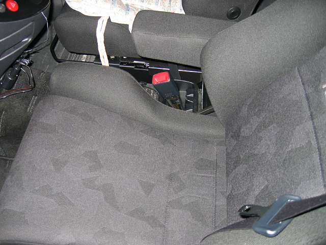 右側の画像は、左右シート間の隙間です。間隔は純正のときとそれほど変わらないと思います。知り合いで、純正のセンターコンソールを残したままツインRECAROを装着されている方がいらっしゃいますので問題ないと思います。