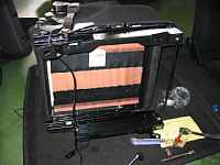 ついにシートが外されました。後付のDVDプレーヤが見えます。ベースフレームのクリアランスがちょっと気になると言われ、ワクワクがドキドキに変わりました。^^
