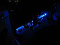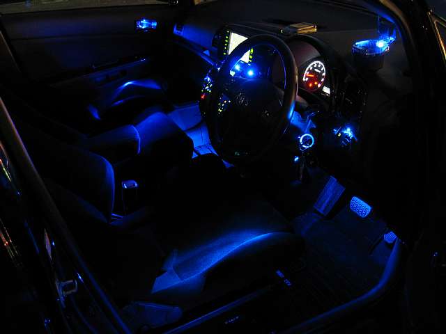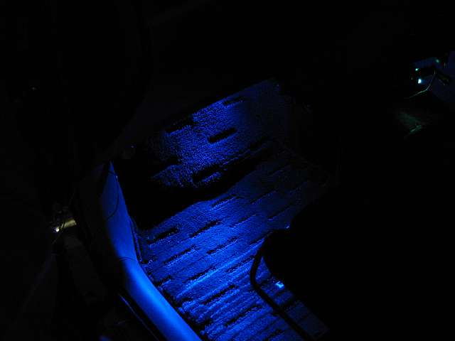 単純にスイッチ連動にしたので、今まで同様にアクセサリから+をとり、スイッチを間に入れ、マイナスをアースに取るだけの簡単配線です。フットランプに使用したLEDは拡散タンプではなく超高輝度タイプでしたので、取り付け角度を決定するのに時間が掛かりました。ていうか、位置調整は今後も続きそうです。^^