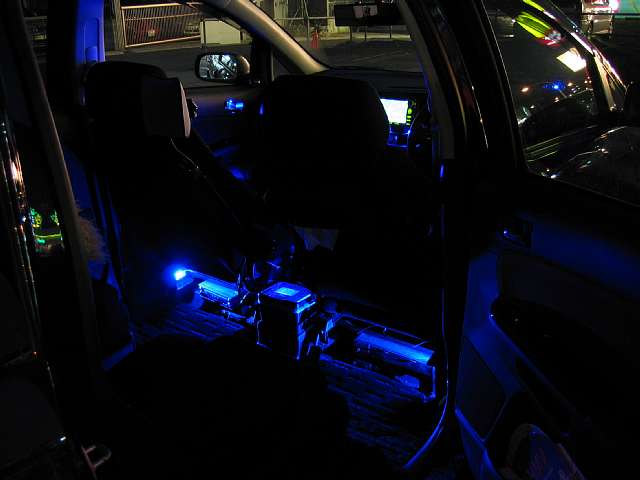 後席側はこんな感じです。助手席下のDVDプレーヤも照らし出されていますので、夜でも安心してディスクの交換ができそうです。^^
