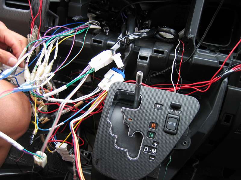前述のように私はMOPナビを装着してますので、接続にはトヨタ車用汎用製品である、接続ケーブル(SS-T106JK)を使用します。ようは、オーディオ本体からスピーカに繋がる配線の部分に、サウンドシャキットを割り込ませるように接続します。...などと書くと、私ごときでも簡単に接続できるのか〜と思われるかもしれませんが、実は、超ご近所のNOBUさんにほとんど全ての作業をやって頂いちゃいました。(自爆)