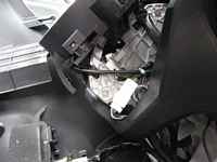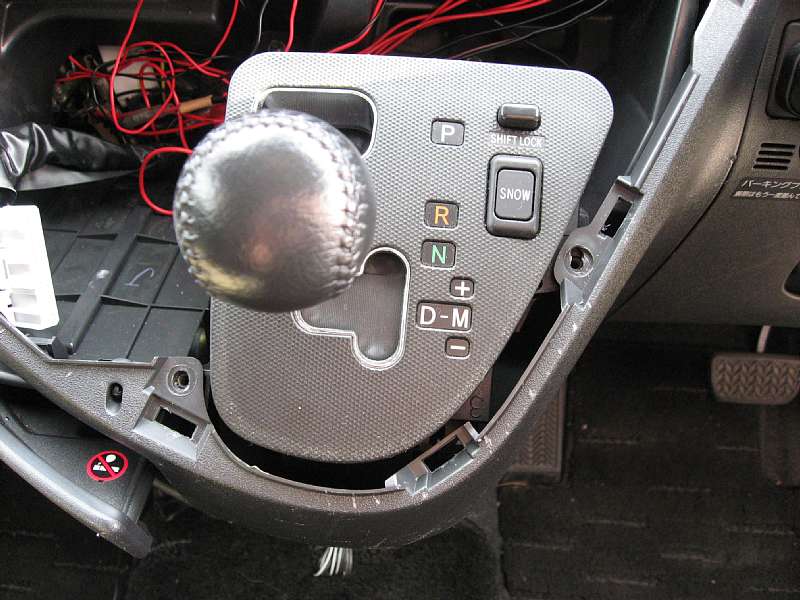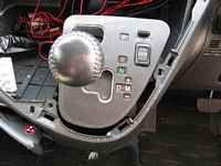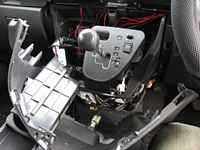 とりあえず内装外しで何箇所か浮かせたあと引っ張って外します。本体側からコードがパネルのコネクタで繋がっていますので外します。その後、画像左のシフトゲート周辺にネジ穴が2つ見えると思いますが、ネジ2つを外します。(画像は外した後です)