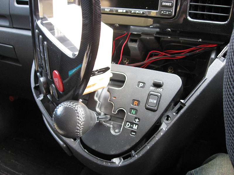 慣れてしまうとそれほど違和感がある訳ではないのですが、wishのシーケンシャルシフトは、マニュアルモードにシフトした後は、手前に倒すとシフトダウン、前方に倒すとシフトアップするようになっています。これはwishに限った話ではなくTOYOTA車ならみんなこのようになっているようです。おそらくTOYOTA以外も...。意味もなくこのようになっているとは思えないので、これ自体は何か理由があるとは思うのですが、GTマシンやゲーセンのレースゲームのシフトはこれとはまったく「逆」で、前方に倒すとシフトダウン。手前に倒すとシフトアップするようになっています。ようは、Gに逆らわず自然な操作が可能になっています。シーケンシャルをシフトダウンだけに利用している人が大半ではないかと思いますが、普通に使用している限りは、手前に倒すとシフトダウン...でもあまり違和感はないように思います。が、フルスロットルでの加速時や急減速時にシーケンシャルを操作すると、純正の+−にはどうしても違和感を感じます。