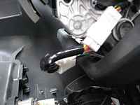 白いコネクタですが、最初浮いているのかと考えていたのですがしっかりと固定されていました。固定はされていますが、画像左側で言うと、コネクタの下側がカチッと外れるようになっていますので、固定されたままで問題はありません。画像右は運転席側からコネクタを撮影したものですが、これだけだとどこを写しているのか分かりにくいですね。^^、