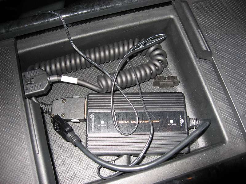 DATAより接続キットなるものが発売されていました。^^ お陰でFOMAで無事接続することはできましたが、ケーブルの途中に別途電源が必要な決して小さくはないBOXが介在するのは不便に感じます。本体が対応さえしてくれていれば、ケーブルの先には携帯電話のみ接続すればいい訳ですので...せっかくのセンターコンソール内の収納もキットを入れたら終りです。^^