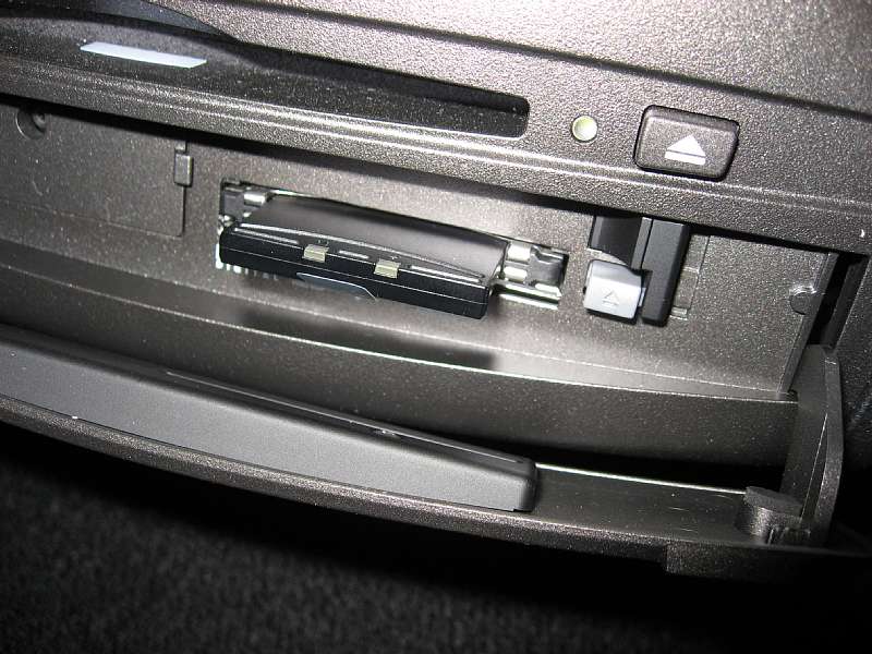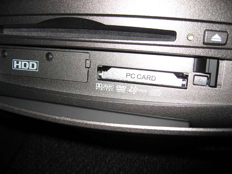 メーカオプションのHDDナビはセンターコンソール下にCDやDVDを入れるスロットが装着されていますが、その下のカバーを開けると左の画像のように、HDD本体とカードスロットが現れます。で、カードスロットに右画像のようにWILLCOMカードを挿入する訳ですが、前述したアンテナを出したままだとカーバーがしまらないため、よほど感度が悪いところを走行しない限りはアンテナは格納したままでカバーを閉めた状態がデフォルトになりそうです。^^