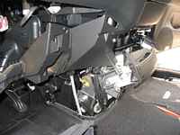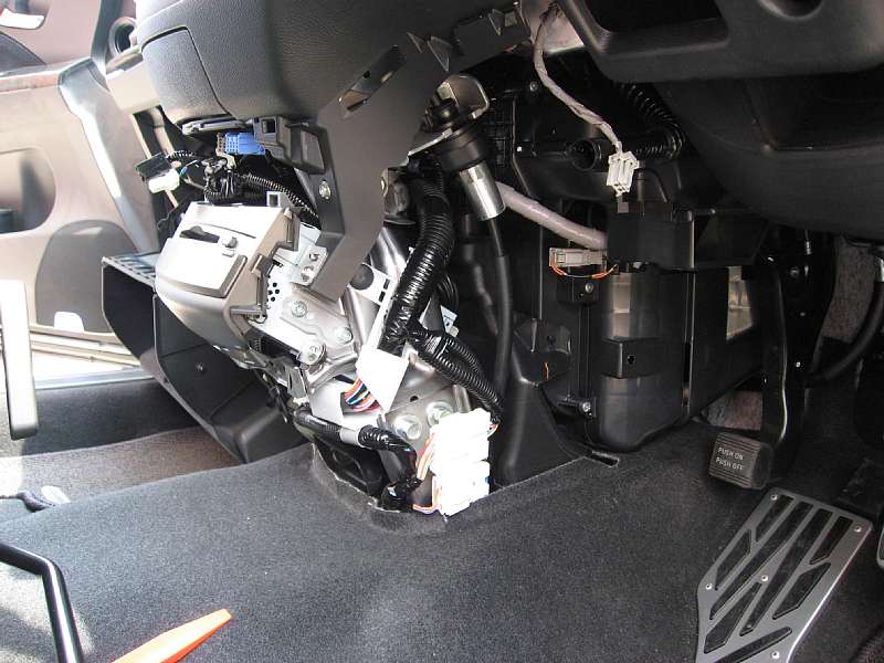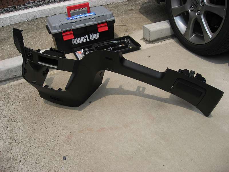 さて、標準のカプラの間に割り込ませるだけの簡単接続ですので、あっ..と言う間に装着完了...の予定でした。純正のHDDナビゲーションに装着する場合には、インパネ下のDVDやPCカードを挿入する機器の背面に装着する必要があります。つまりインパネを外さないといけない訳ですが、wishで慣れていたので安易に考えていました。やはりメーカが違うと色々と違うもんですね〜。いつものように勢いで^^