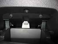 更に、左側画像のように、運転席右側の小物入れを空けると上部にネジで固定されていますので、それも外します。さぁ...あとはピンなどで引っ掛かっているだけですので、時には大胆に...時には丁寧に...内装はずしなどでゆっくり外します。前述したようにここで私は助手席側のツメを一箇所割ってしまいました。(TT)