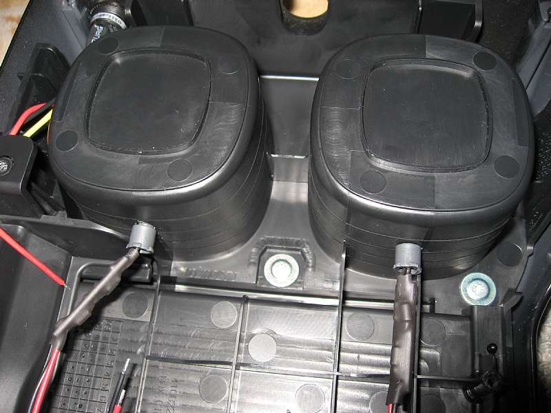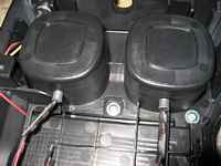 あとは画像撮り忘れてしまいましたが、標準の携帯接続ケーブルコネクタがささっている穴の下を2箇所ヤスリで削って、ケーブルを2本出せるように加工しました。今までは、2列目席側のアクセサリソケットに2個口の拡張ソケットをさして、そこに、FOMAアダプタ電源とFOMA充電用アダプタの電源を取り、センターコンソールの脇を通して、小物入れの隙間から小物入れ内部に配線していましたが、DVD環境用にシート下まで下ろしたACC電源から、線付きソケットを経由で分岐させ、そこに2個口ソケットを挿入。そこから電源と取り、センターコンソール内部を通して、先ほどヤスリで削った穴から小物入れ内部に通しました。これで配線はすっきりしましたが、小物入れは相変らずFOMAアダプタで占有されてしまっています。(TT)
