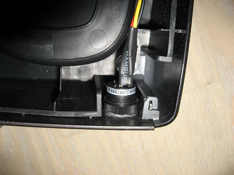 ドリンクホルダ側は裏から見るとこんな感じです。この部分はエーモンの3mmを利用したので、一緒に売っているグロメットも利用して取り付けたのですが、結論から言うとこの角度での取り付けはグロメットが干渉して実車取り付けの時に収まらなかったので急遽、現場にてグロメットを外し、ホットボンドでの取り付けに変更になりました。^^