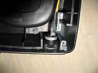 で、穴もうまく空けることができ早速仮点灯させてみましたが、い〜感じです。ちなみに、このエーモン製のプッシュスイッチですが、内蔵されたLEDの光らせ方を選択することができます。OFFの時に消灯でONにした時のみ点灯させる通常のやり方と、ON.でもOFFでも光らせっぱなし...というモードも選択できますので好みによって選ぶといいと思います。私は通常のやり方にしました。^^