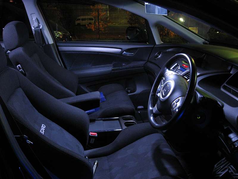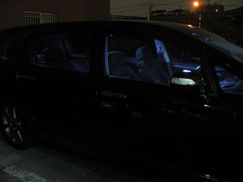 写真では分かりにくいと思いますが、夜間に直視するのは危険です。セカンドシートの上も換えているので、フロントは通常は消していてもいいかもしれません。右画像の通り、外から車内が見えすぎてしまいます。