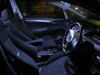 装着は非常に簡単です。内装外しやマイナスドライバでランプカバーをこじって取り外し、純正のランプを取り外し、代わりにルクサー1を装着し、隙間にはめ込むだけです。ルクサー1のLEDの裏側にはスポンジやら両面テープやら付いてますので、ピッタリと固定されます。極性がありますので、画像の状態で一度点灯することを確認してから固定するのをお勧めします。