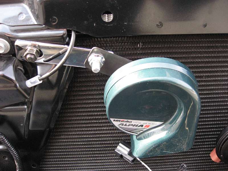 画像の通りの場所にステンレス?製の厚めで短いステーをネジ留めし、ホーン自体はステーに取り付けました。最初はホーンがステー経由で空中に浮いた形になるため、振動でゆれるのでは...と考えましたが、ステーの厚みのお陰か結構頑丈に取り付けることができました。^^