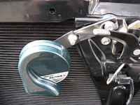 Absoluteは純正セキュリティが付いていて、ボンネットを不正な手段で開けるとホーンが鳴り響くらしいのですが、窃盗犯はまずホーン配線を切断して警報がならないようにするでしょうから、比較的壊しやすいグリル周辺を避け、見えにくい場所に設置したのではと考えています。と言う訳で...うちのホーンは3重奏で鳴っています。(爆)
